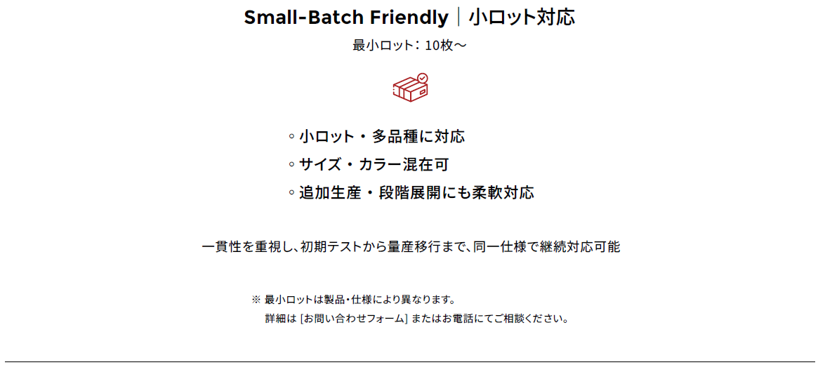 • サンプル工程を省略し、即量産へ移行可能